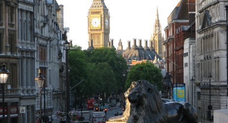 ロンドン有数の観光地、トラファルガー広場は中央に噴水があり高さ44メートルのネル...